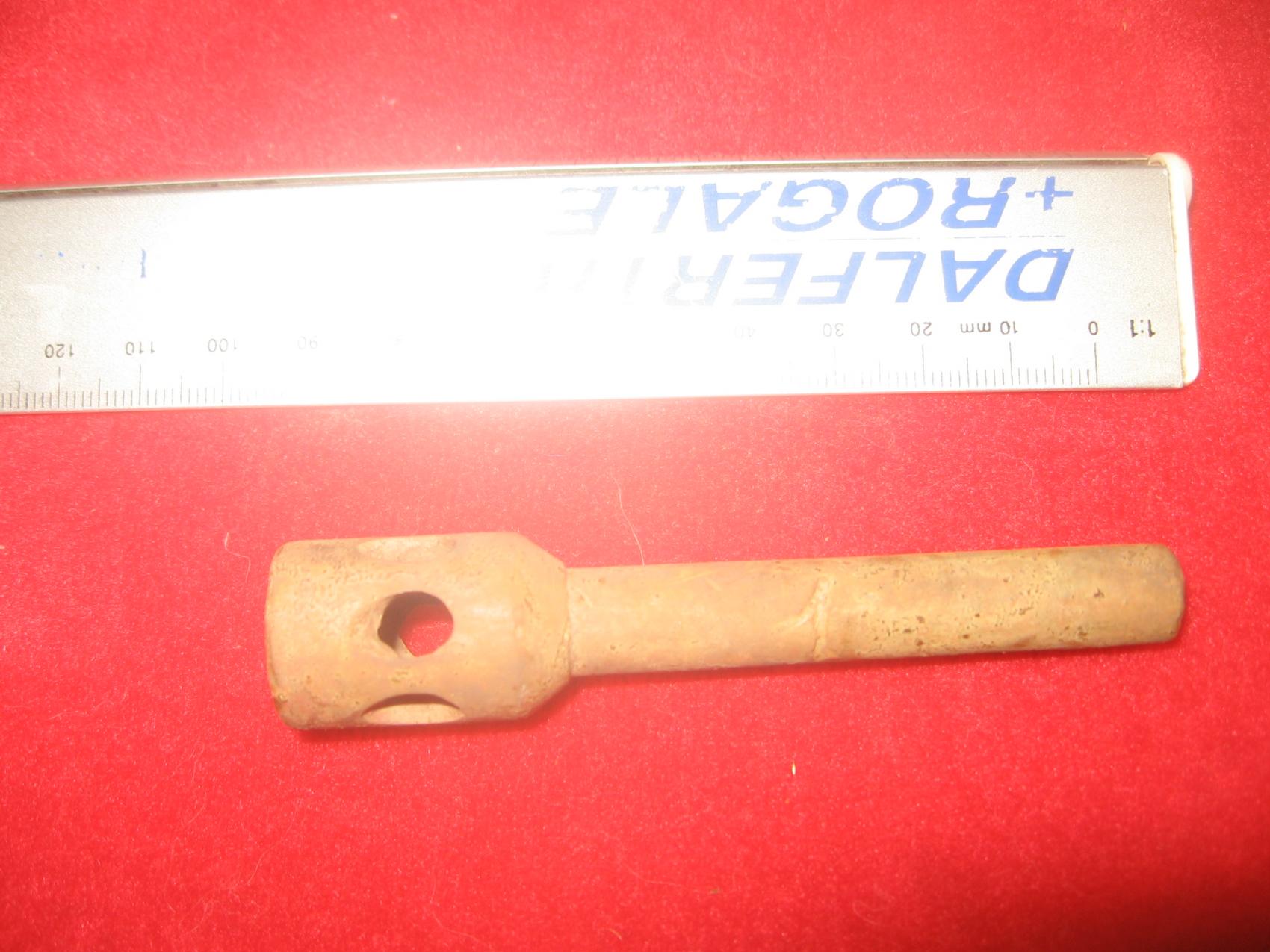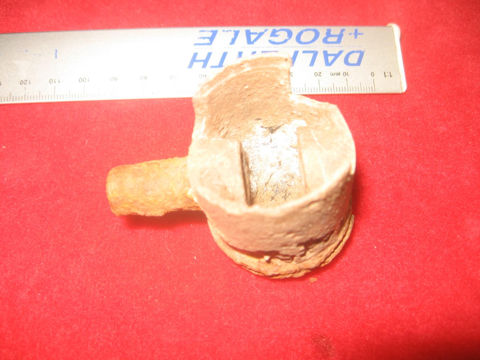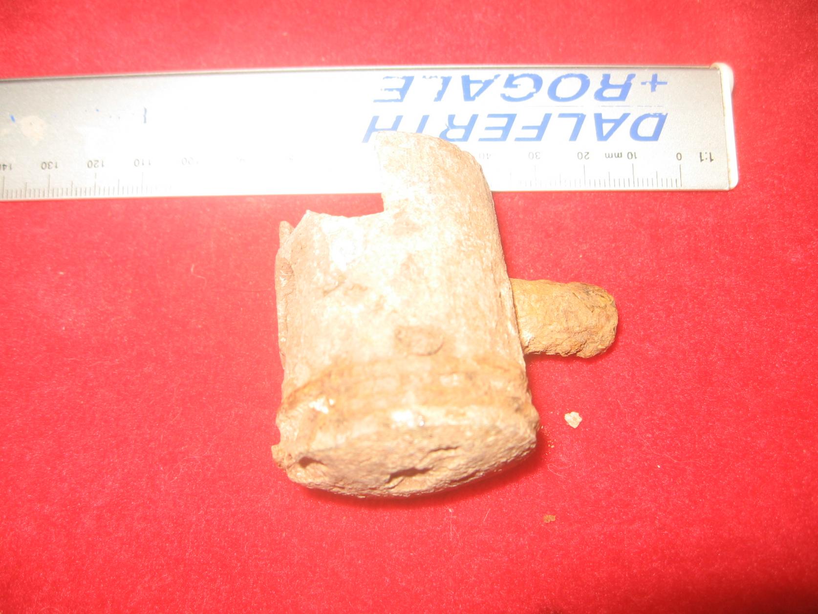 Objekt 1 ist 9 cm lang, innen hohl und hat ein Innengewinde auf der breiten Seite.