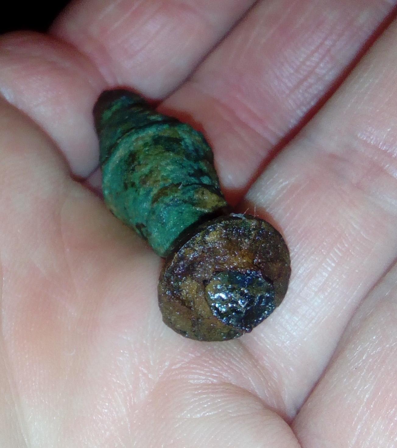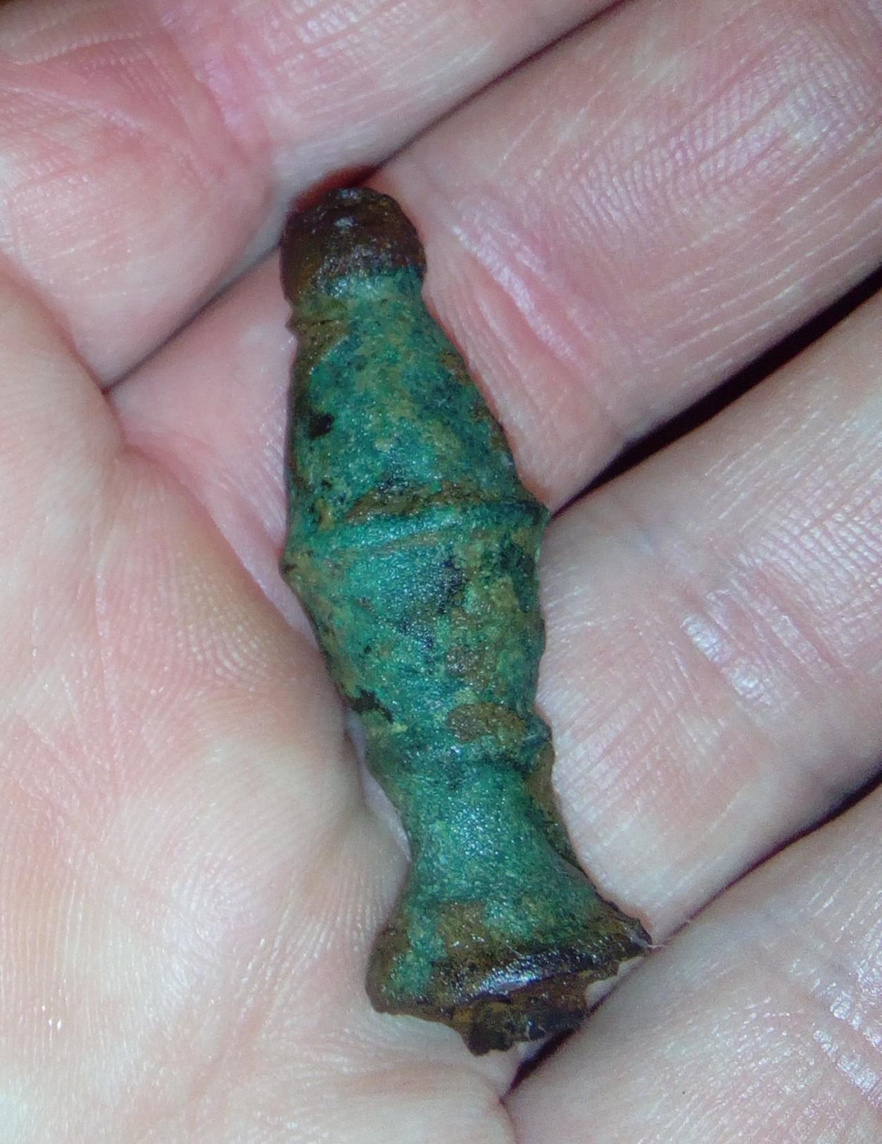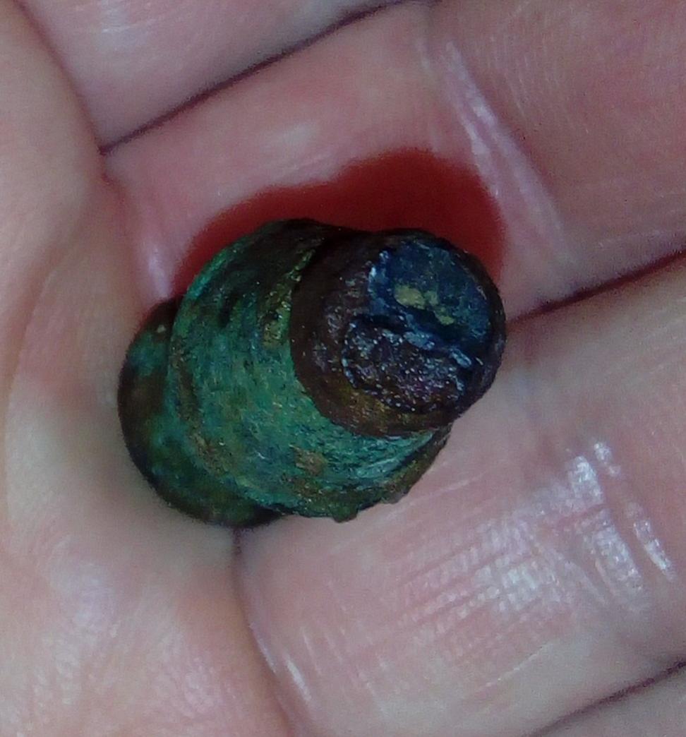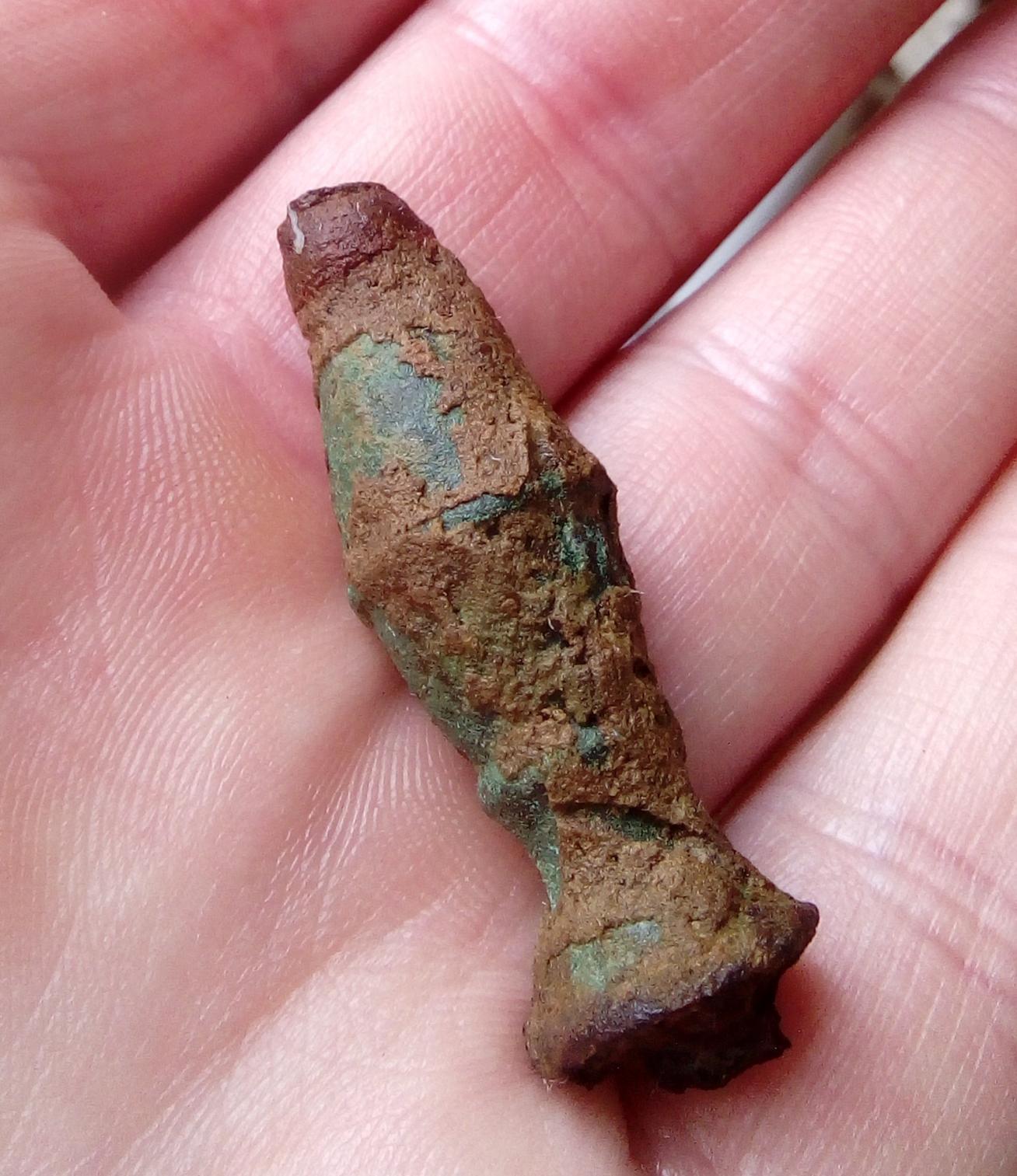Es besteht aus massiver Bronze und weist an Ober- und Unterseite Eisenrückstände auf.