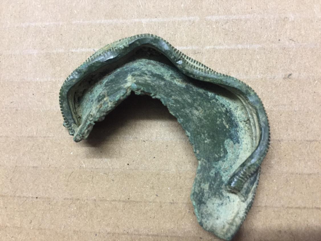 Das sieht erstmal hochinteressant aus. Ich persönlich würde keine verifizierbare Identifizierung vornehmen können das ist was für einen Fachmann. Allerdings Bronze scheint fast sicher, bleib dran, wer weiss was du da feines gefunden hast. Wäre es länger und an der einen Seite etwas dünner könnte es eine Sichel aus der BRZ sein, aber die sahen allgemein dann noch etwas anders aus.. Ich bin gespannnt was dabei rauskommt.