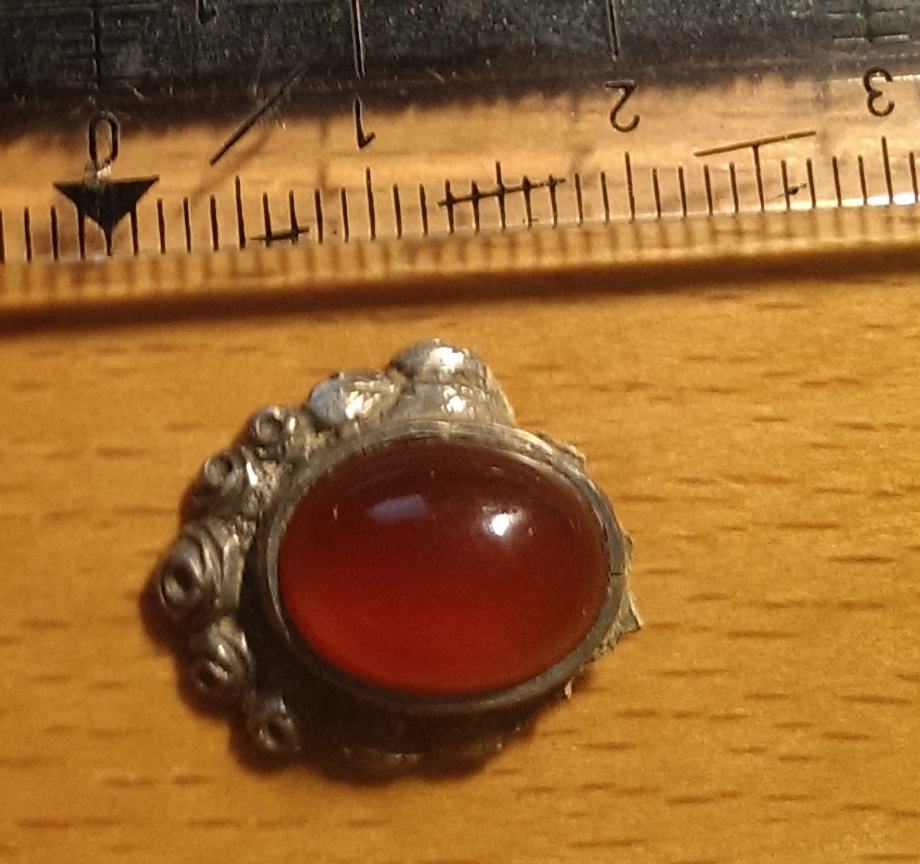 Ausserdem würde mich interessieren was für ein Stein eingefasst wurde, für mich als Leihen sieht er nach Glas aus , vorallem weil er auf der Rückseite fast spiegelglatt ist. Geradelinige Schleifspuren sind allerdings zu erkennen.
