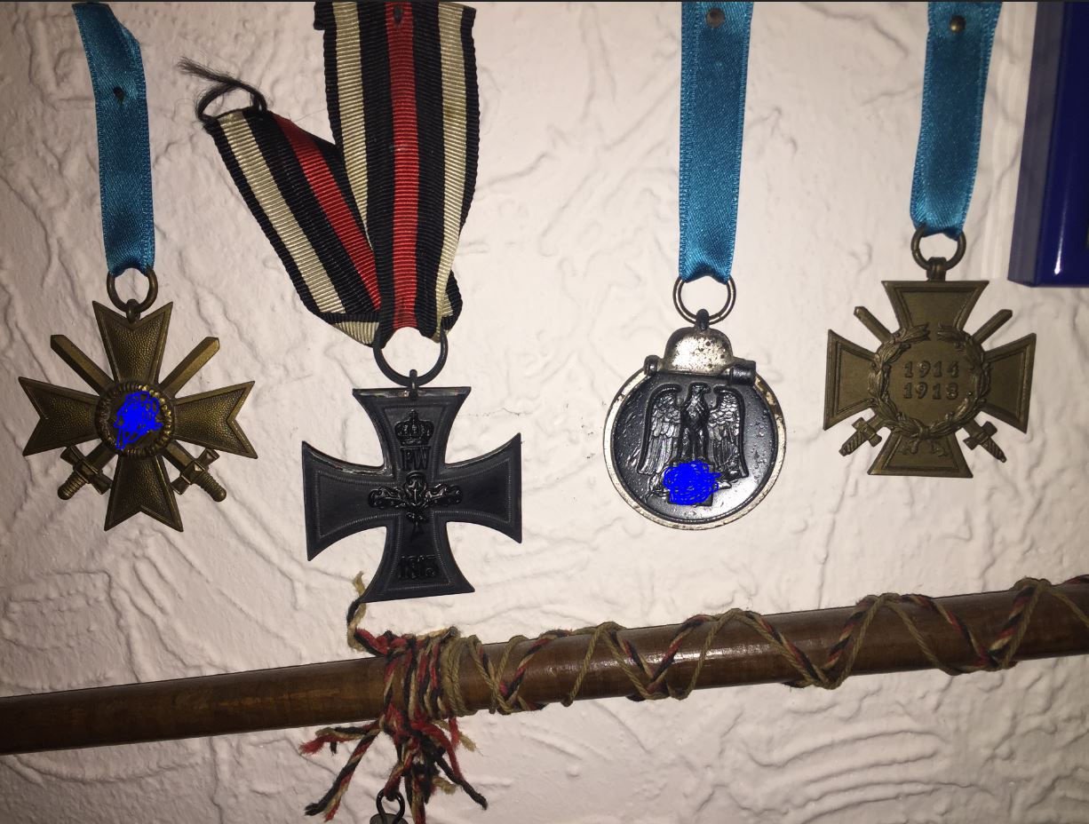 Schöne Stücke. Das EK2 scheint stark angelaufen zu sein. Liegt an den versilberten Zargen. Ist in etwa so wie mit Silberbesteck. Aber bitte nicht herumpolieren. Das ist Patina und gehört so.