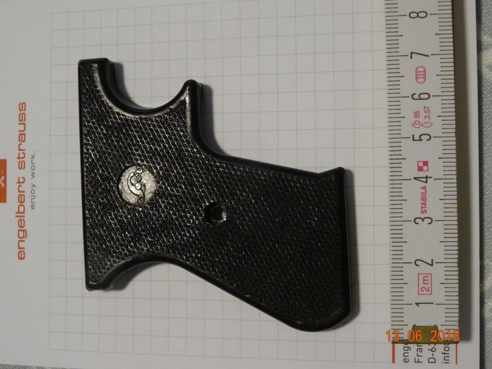 Beim verscharren von irgendwelchen Lilienknollen im Kleingarten erblickte diese Griffschale einer Pistole das Erdenlicht wieder. Material ist Bakelit, Maße siehe Bilder.
