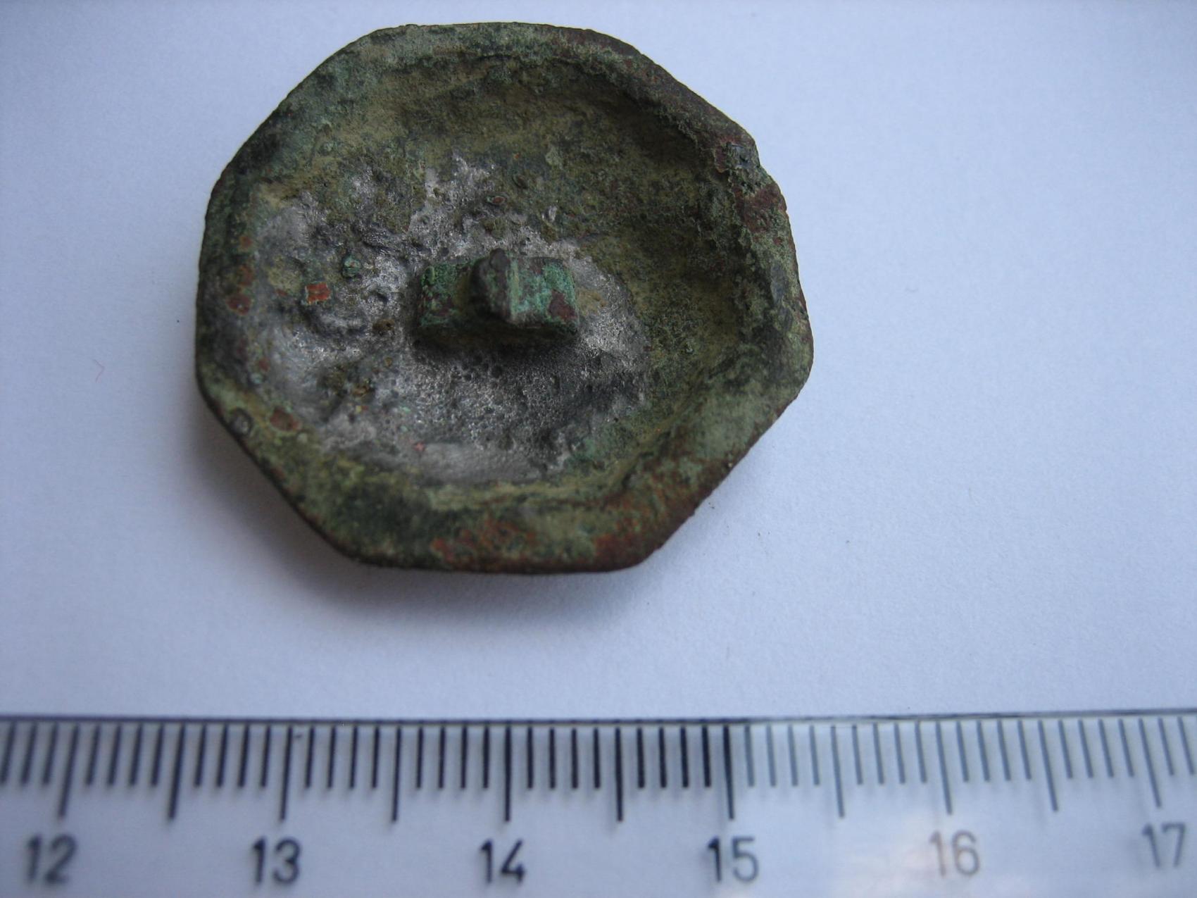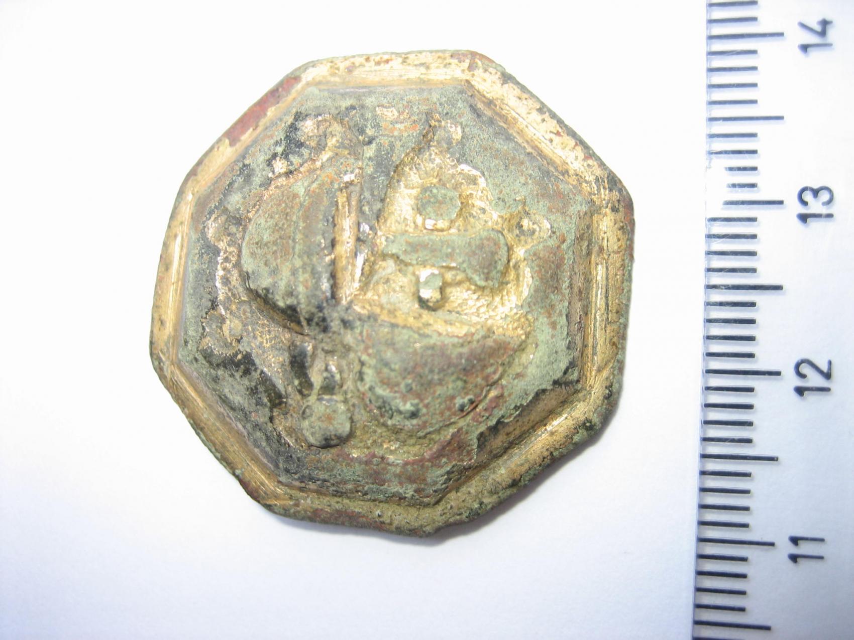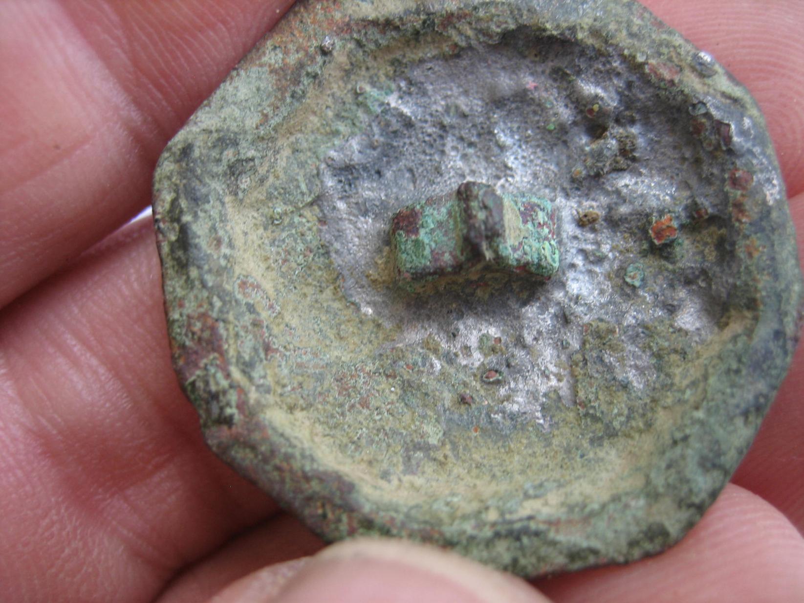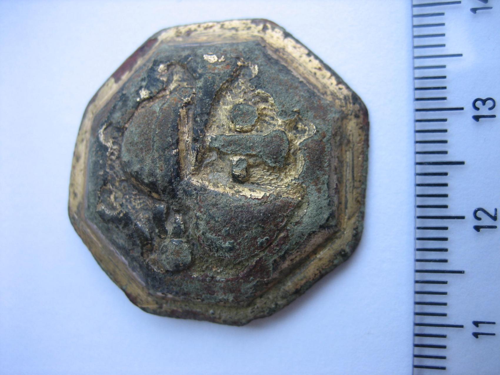 Von der Machart würde ich auf 700 bis 900 n. Chr. tendieren. wegen dieser wenn auch "fratzenhafter" Darstellung(Gesicht mit Helm) bin ich auf soetwas wie Heiligenfibeln/ Scheibenfibeln gestoßen, allerdings irritiert mich die Befestigungsmöglichkeit auf der Rückseite ein wenig.