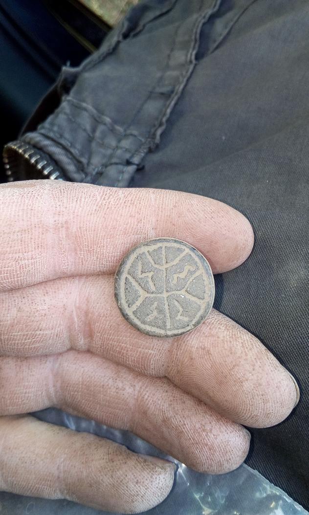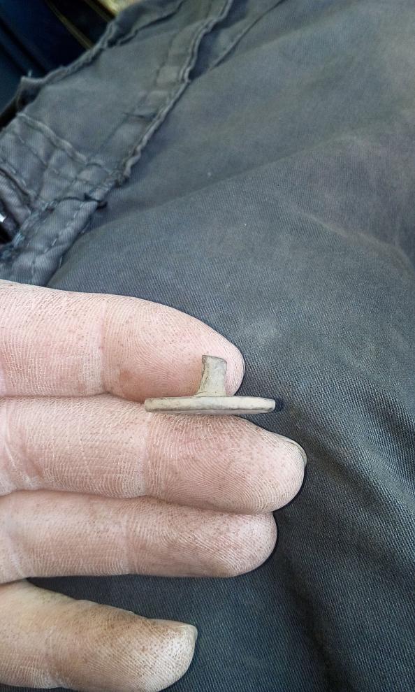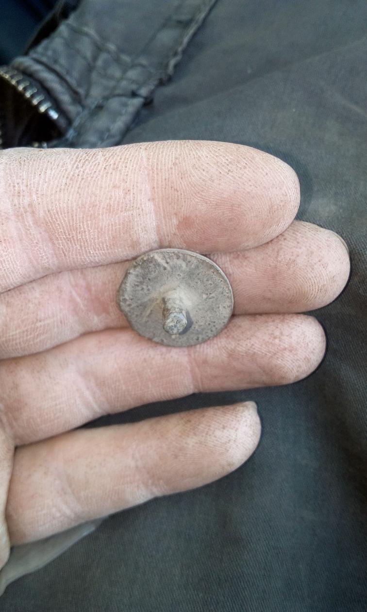 ich dachte natürlich im Fundmoment an einen typischen Knopf. Die Rückseite verrät aber, dass es sich wohl um einen Beschlag handeln muss.