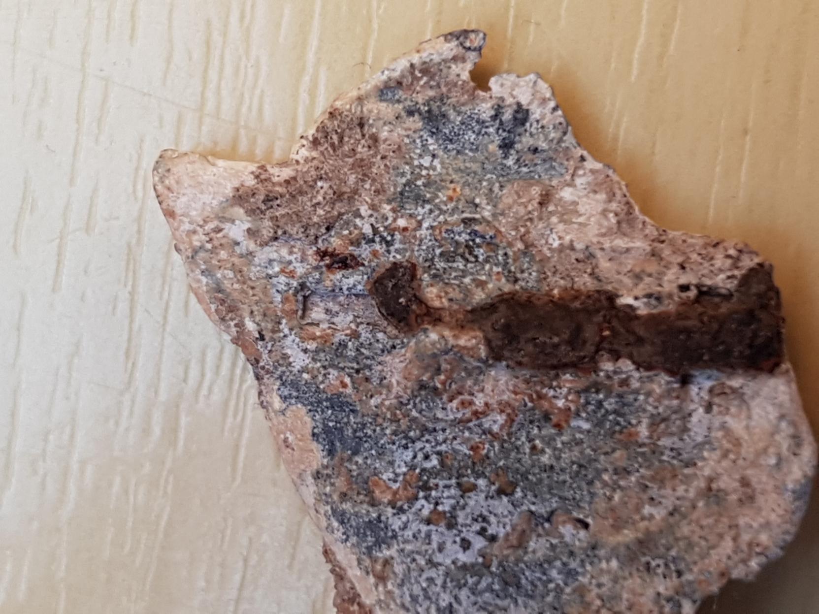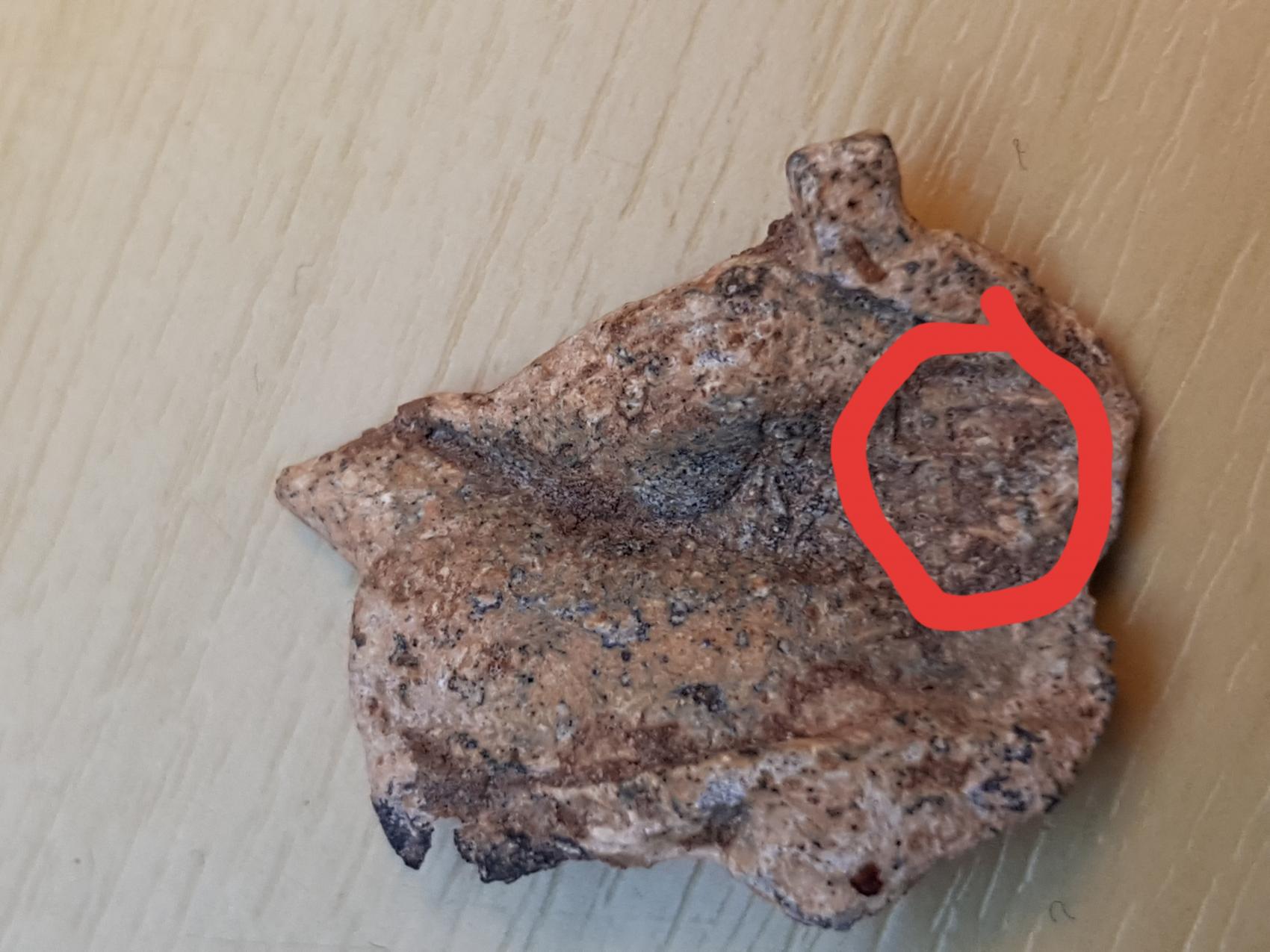 Ich habe gestern ein Stück von einem Abzeichen gefunden. Auf dem unteren Bereich (vlt aber auch der obere, da ich nicht genau weiss, wo Oben und Unten ist) ist deutlich ein HK zu erkennen und am Rand so etwas wie das Stück eines Hufeisens (???). Auf der Rückseite erkennt man noch die Reste der Nadel und die Presspunkte zum fixieren der Nadel.