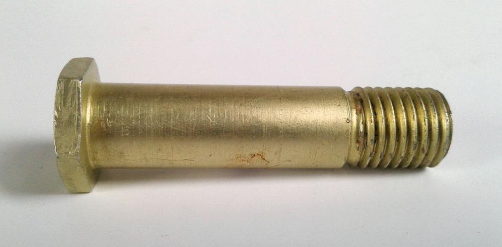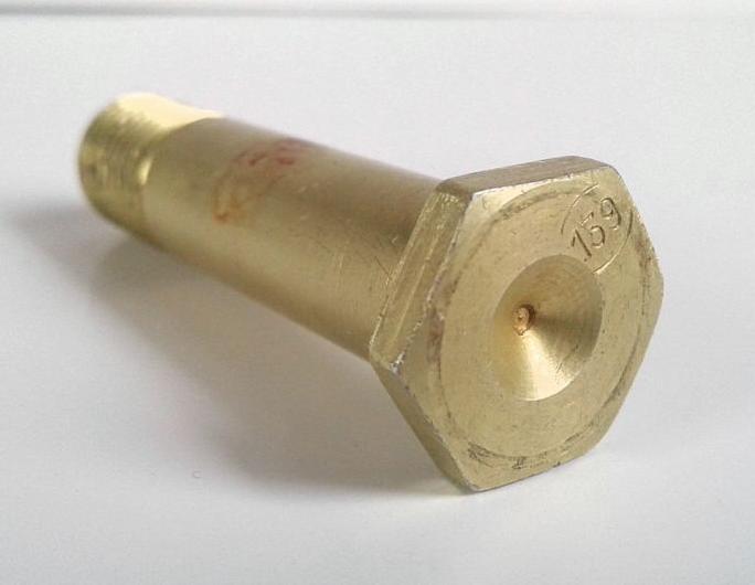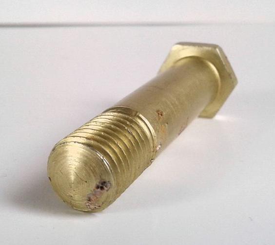 Das zweite Teil ist eine gelb eloxierte Schraube,Länge 5,5 cm,Gewindedurchmesser ist 10 mm.Der Kopf zeigt eine gepunzte '159' im Oval.