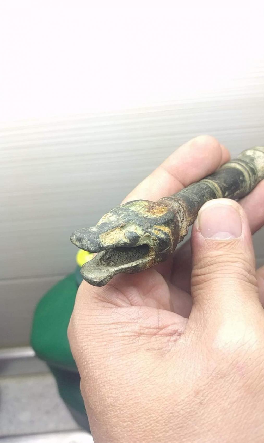 und das teil, sieht für mich aus wie eine Jagdpfeife, jedenfalls der kopf sieht aus wie vom Krokodil, auch die augen kann man erkennen oder es ist ein Drache ?. Ich dachte zuerst ein Teil vom Traktor, oder von der Möbeleinrichtung eines schlosses, oder was denkt ihr ?