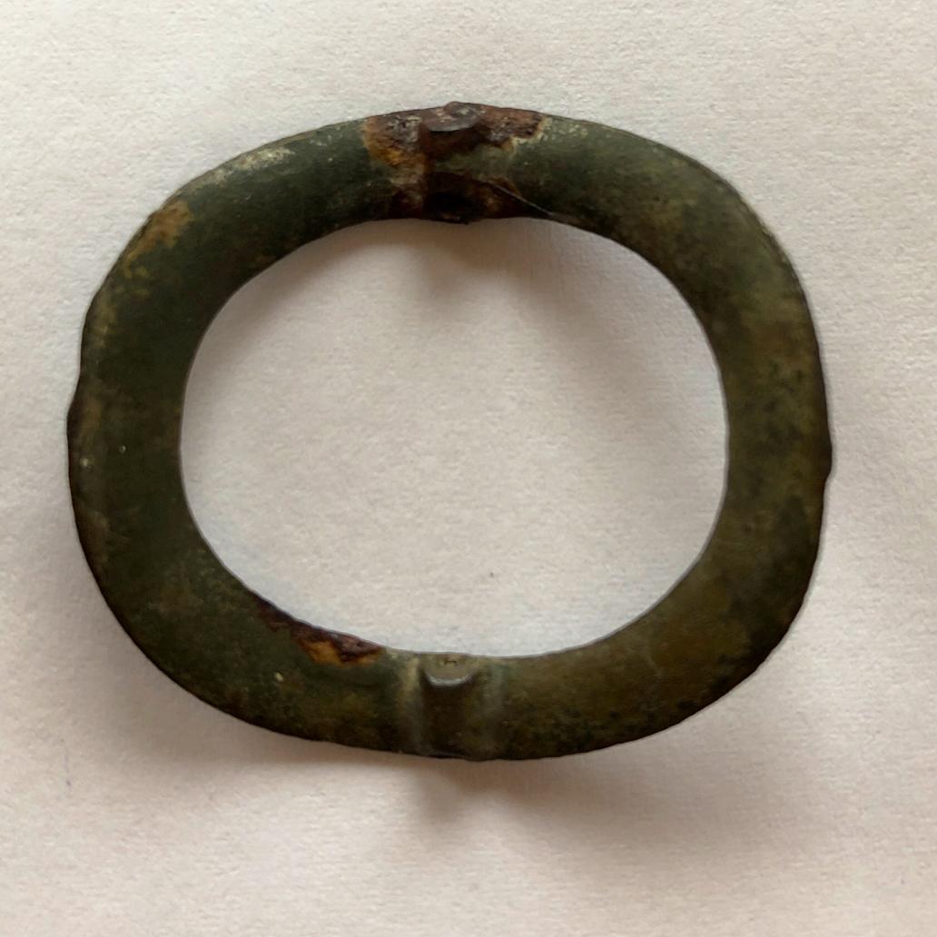 Hier mal eine schöne Schnalle fürs Auge. Diese habe ich vor circa zwei Wochen im Wald in der Nähe eines Steinbruch es gefunden. Sehr schön filigran gearbeitet vom Material her würde ich Silber vermuten. Sicher bin ich mir mit dem Material allerdings nicht. Eine Blüte weißt es Oxidationsspuren auf, Es ist die eine die für den Stift mit dem Dorn aufgenommen hat. Würde ich die Schnalle polieren denke ich, dass sie silbrig wäre. Ich lass das aber sein, nicht um die wertvolle Patina zu beschädigen.Stichworte: - -