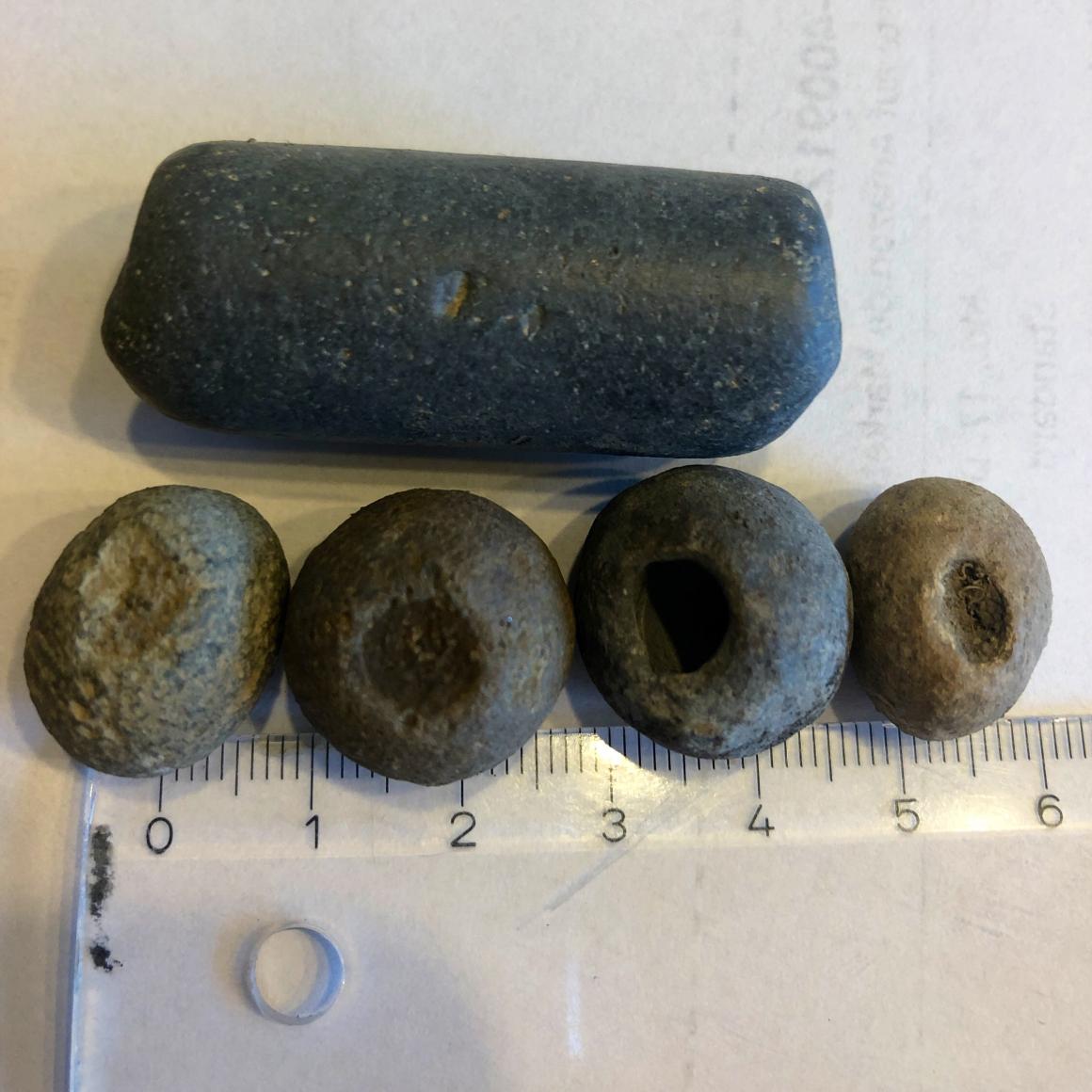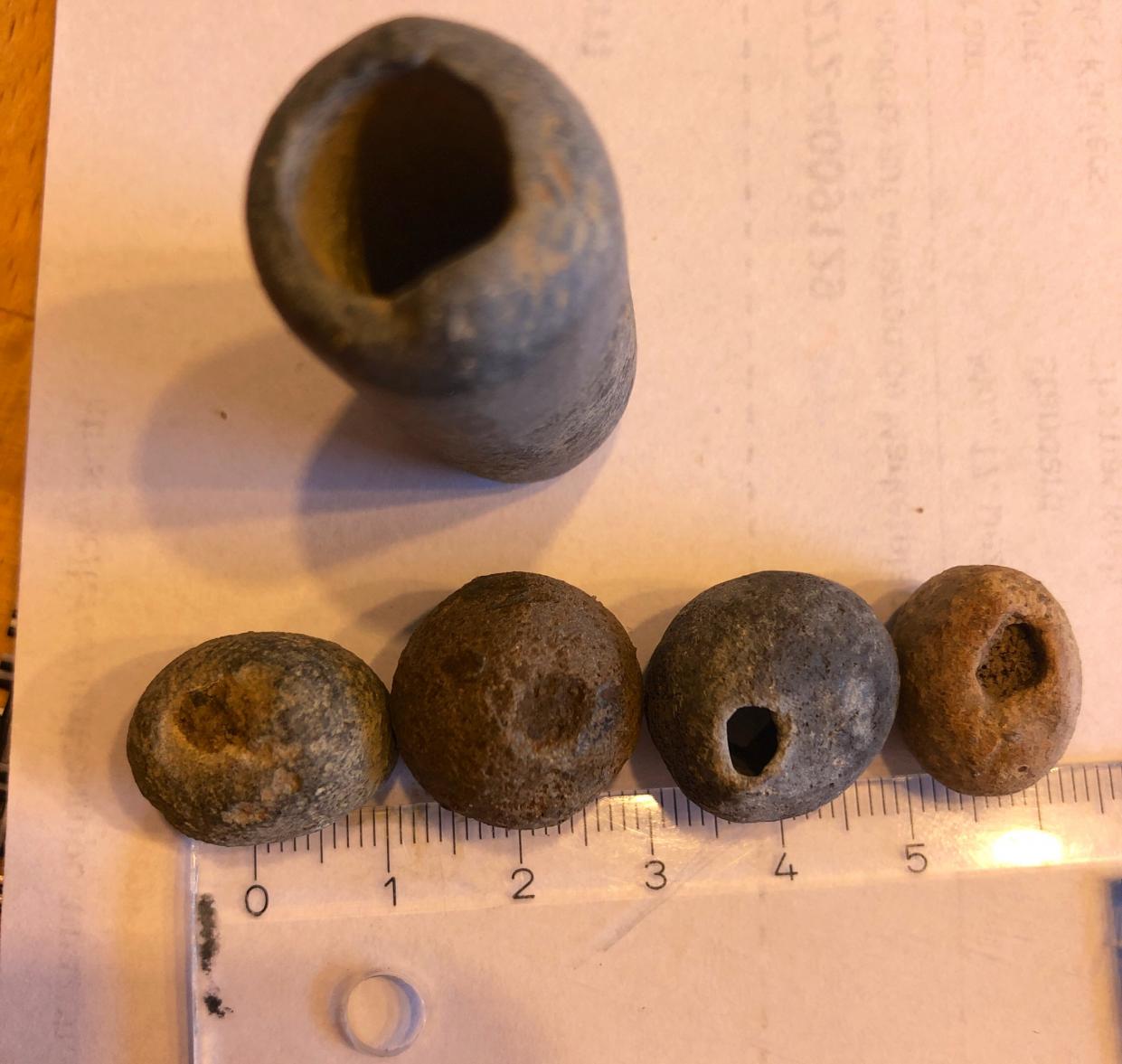 Diese Bleikugeln habe ich im Sommer am Mainufer gefunden. Sie sind nicht perfekt rund. Wurden diese durch mechanische Einwirkung verbogen? Die Öffnung ist bei allen 6-7 mm während die andere Seite der Öffnung nur 3-4 mm hat. Das haben alle gemeinsam. Das ist eine Besonderheit die ich mir nicht erklären kann. Warum ist Die Öffnung auf der einen Seite viel größer als auf der anderen Seite? Welchen Sinn hat das? Die Bohrungen sind außerdem nicht sonderlich rund, vielleicht wurden sie im Lauf der Zeit irgendwann mal verbogen durch irgendeine Krafteinwirkung. Haben diese Kugeln den Sinn Fischernetze zu beschweren? Oder sind das Spinnwirtel? Vermutlich eher zum beschweren vermutlich haben die Kugeln eher Bezug zur Fischerei wegen dem Fundort am Gewässer oder?Stichworte: -