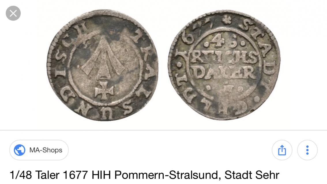 Hey hast doch ne alte Münze gefunden,1/48 Reichs Daler aus Stralsund so um 1677....