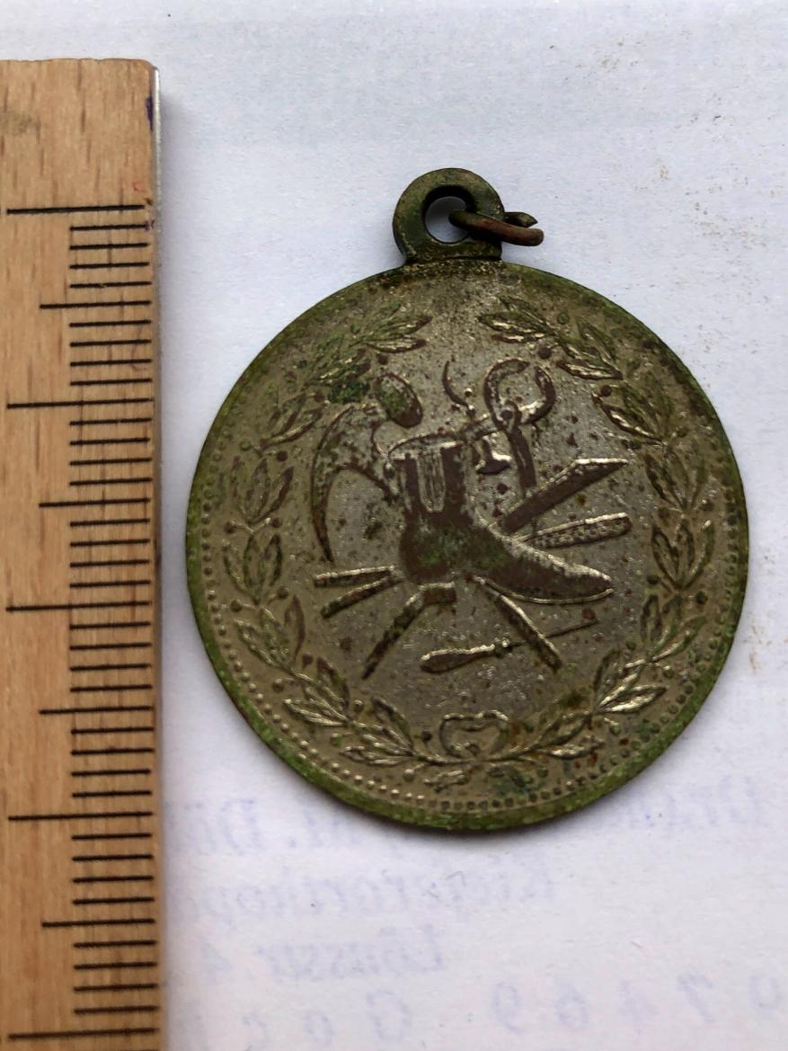 Ich denke die Medaille ist auch einigermaßen alt, 1890 oder 1900. Zumindest gibt es vergleichbare Stücke im Netz in dem Alterszeitraum. Die Medaille ist auch völlig intakt, obwohl sie in einem Acker lag. Das ist schon außergewöhnlich bei der Größe. Trotzdem, ich ging zuerst von einem Orden im Zeitalter von Napoleon aus und war dann beim Abwaschen schon etwas enttäuscht.