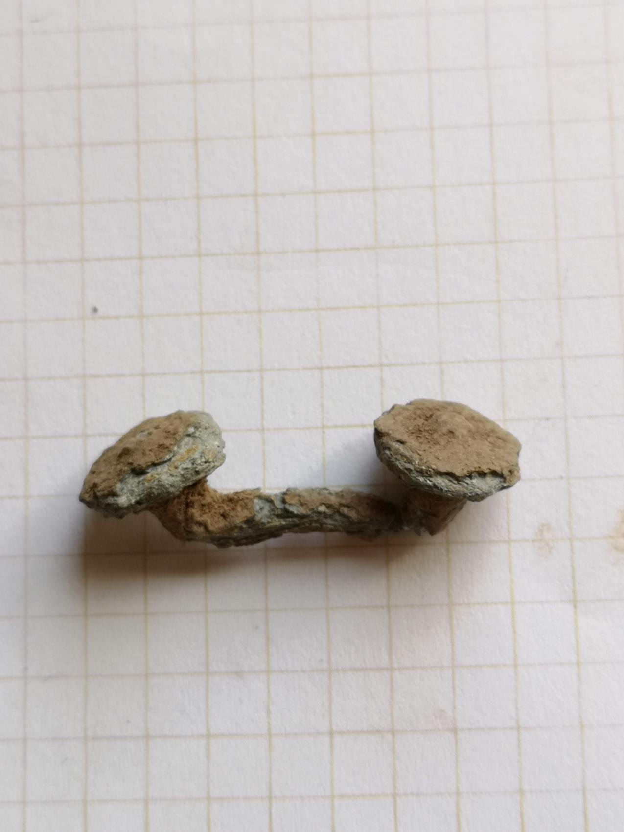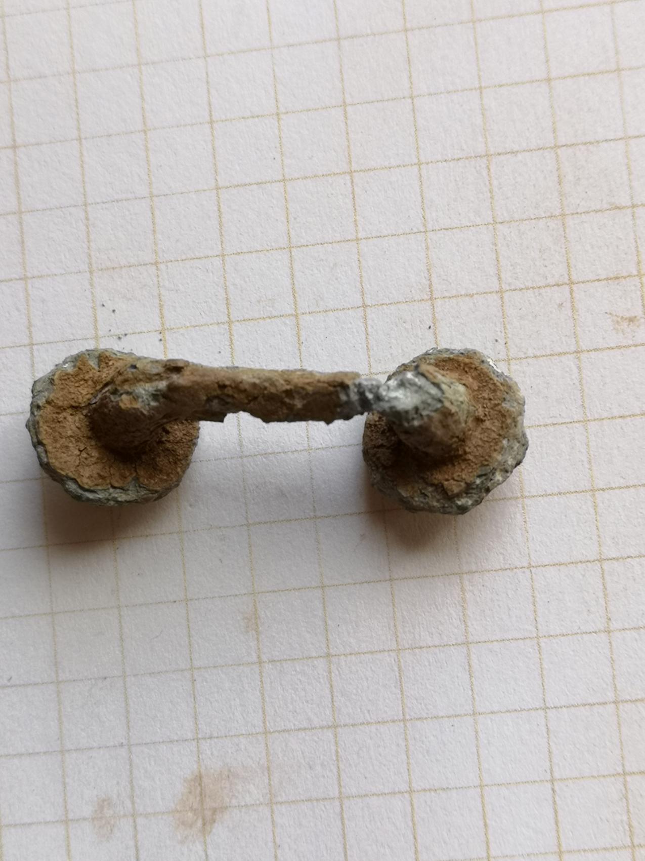 Zeitlich kann ich es gar nicht einschätzen. Das Material ist extrem korrodiert und nicht wirklich zu bestimmen. Mmn Blei oder Zinn.