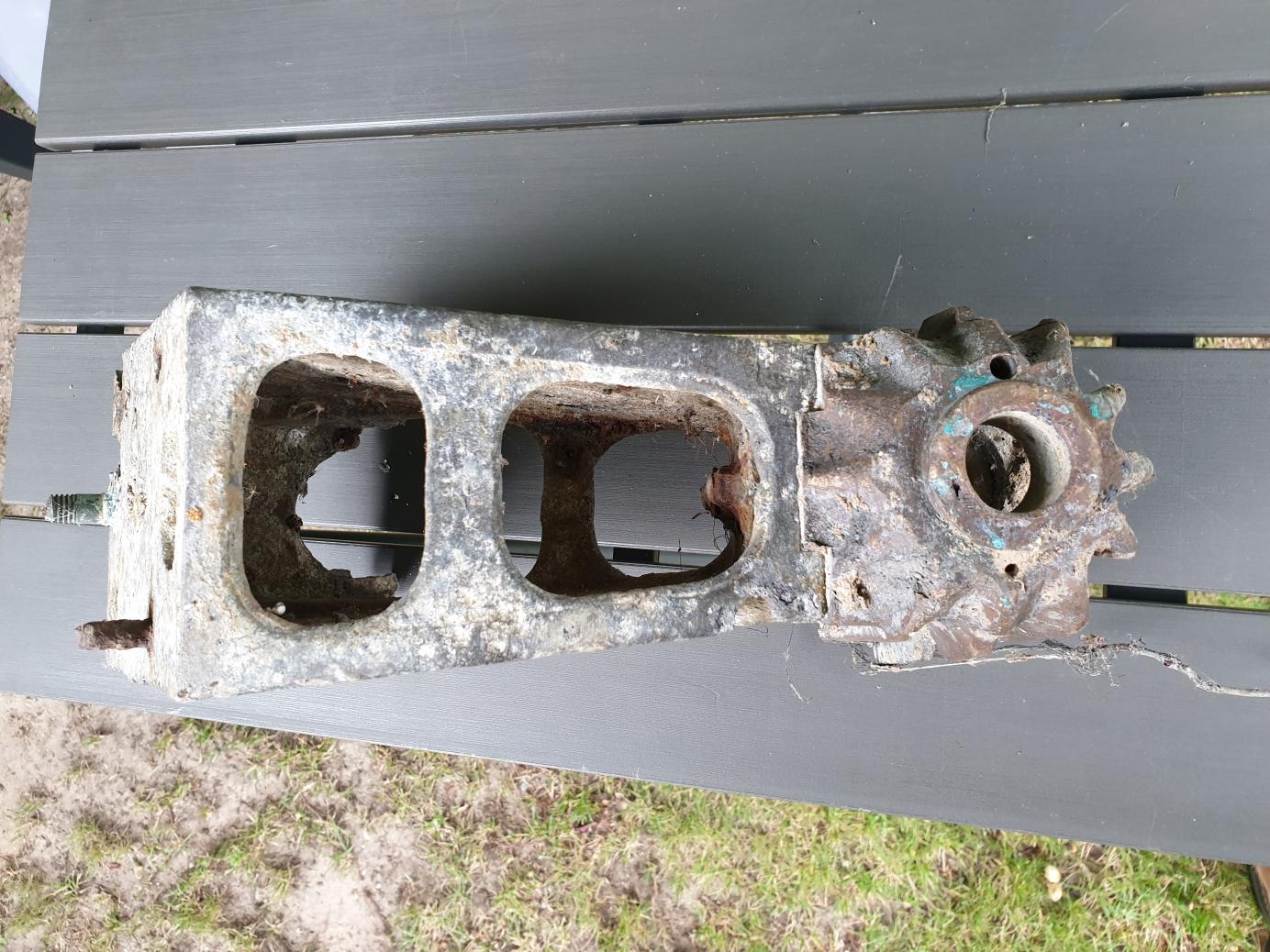 Ich habe es vor ca.15 Jahren von Acker geholt wo es neben dem Flakscheinwerfer zwischen Feldsteinen lag. Der Platz war so ein Sammelpunkt für alles was der Bauer auf seinem Feld gefunden hatte.