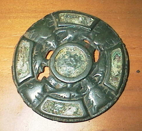 hab gestern diese Bronze-Scheibe (ca 8 cm Durchmesser)ausgegraben... Kann mir jemand was zu Alter und Herkunft sagen? Könnte evtl auch ne Art Fibel gewesen sein, da an der Unterseite zwei silberne Lötstellen zu sehen sind.