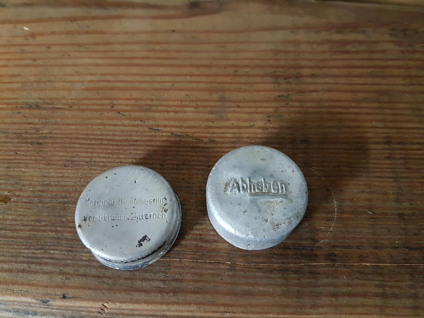 Habe hier noch 3 Alu Deckel liegen,weiß aber nicht für was die mal waren,vielleicht kennt die einer.Durchmesser ca.3cm
