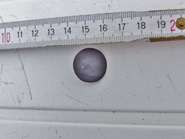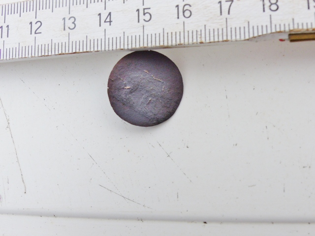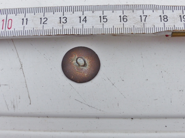 Dann ein Knopf, auf der Vorderseite noch schwach zu erkennen ein Tiermotiv. Wie alt mag er wohl sein.