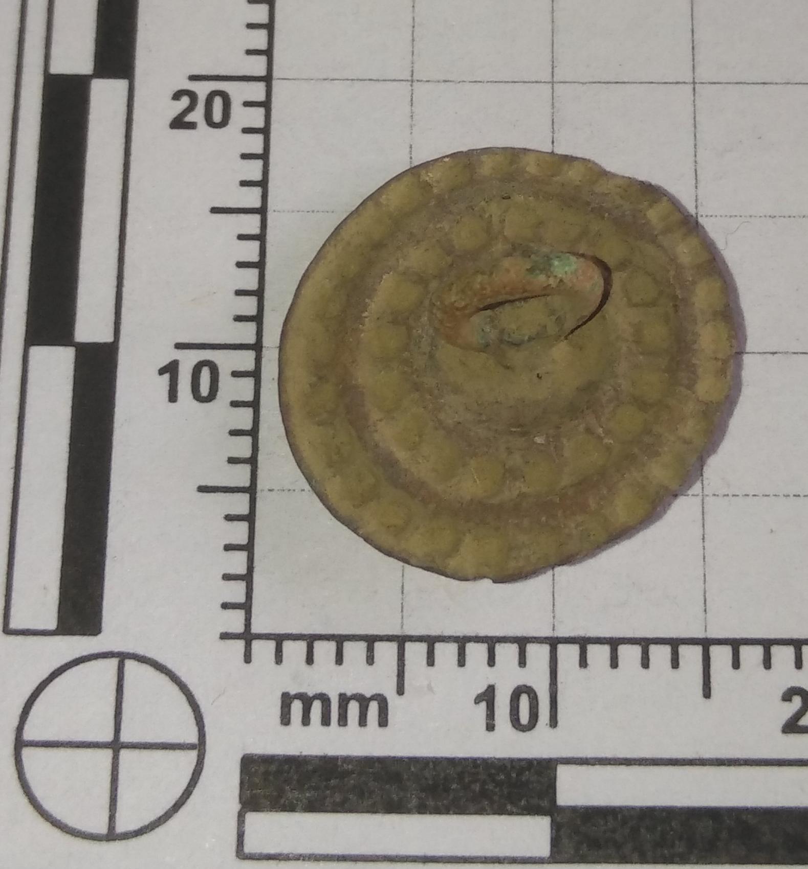 ich habe kürzlich wieder einen Knopf gefunden, zu dem ich aber auf den bereits genannten Seiten"Knopfsammler" und "mkn-Sondler" leider nichts Vergleichbares finden kann.