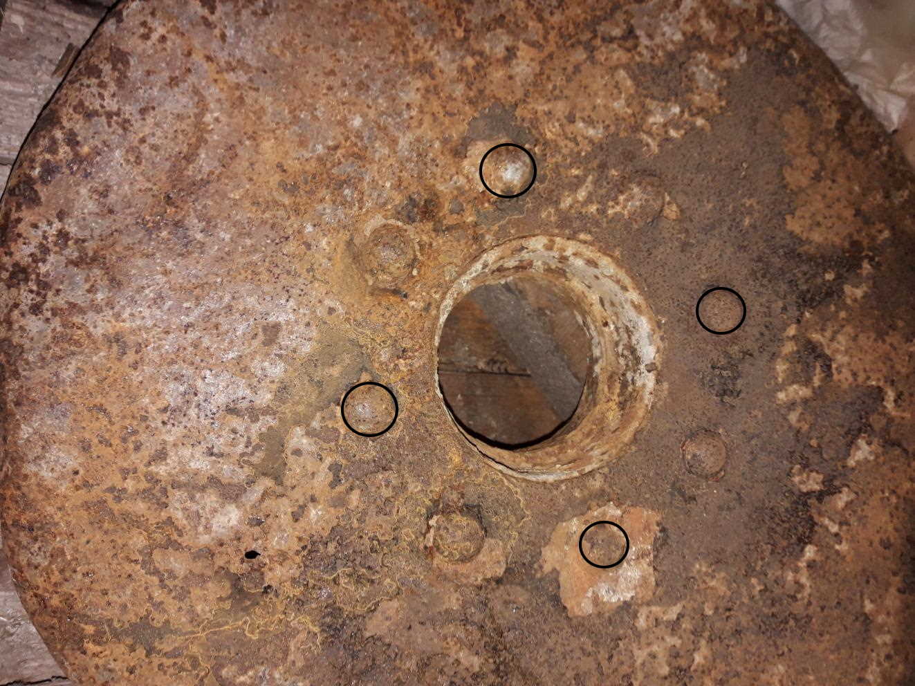 Mir kommt das vor wie ein Deckel von einem Fass oder ähnlichem. Denke beim betrachten immer mehr an ein Rührwerk oder so etwas. Teil einer alten Wasserpumpe kam mir auch in den Sinn. Hab da aber nix ähnliches gefunden , sind nur Gedanken.