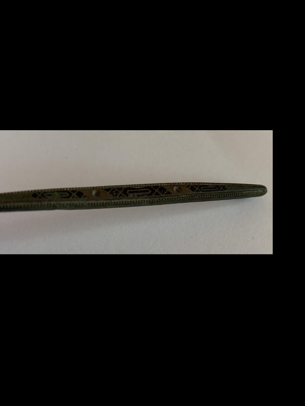 Material sollte Bronze/ Bronzelegierung sein, Das schwarze in den Mustern scheint in irgendeiner Form plattiert, eingelegt....