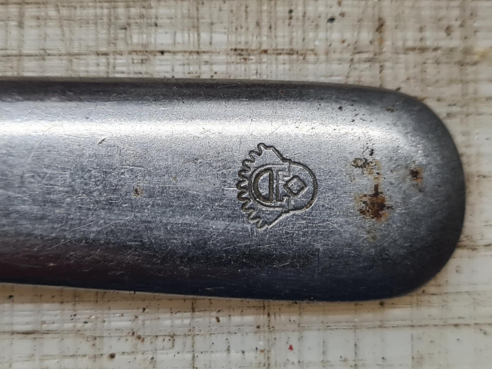 Hab hier ein Besteck messer, nix besonderes, aber das Wappen auf dem Griff gibt mir Rätsel auf,so noch nicht gesehen.