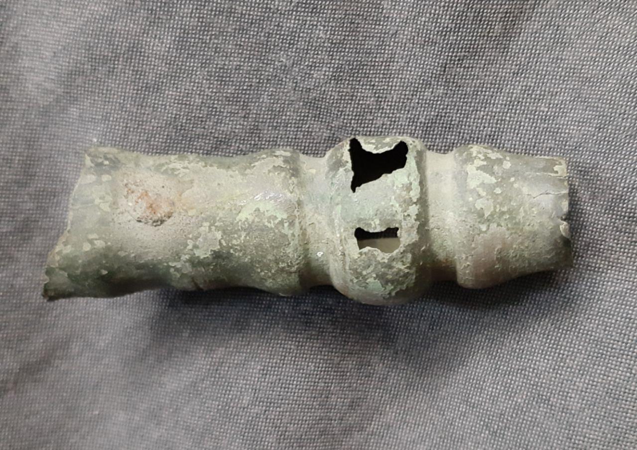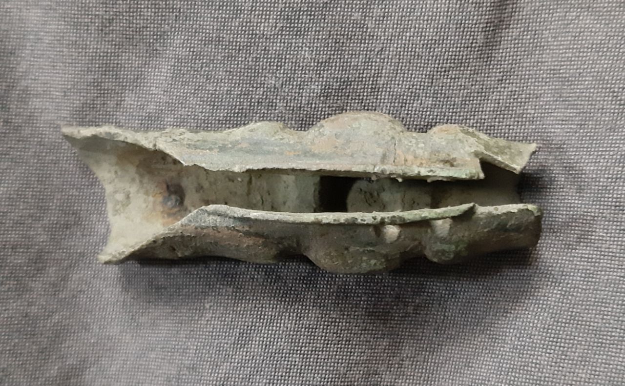 Hallo allesamt. Dieses Teil durfte ich mal fotografieren. Ich selbst vermute ein Fragment eines Ladestockroehrchens. Frage hierzu: Muskete oder Pistole? Es hat meines Erachtens eine sehr markante Form. Drei Möglichkeiten zur Zuordnung gaebe es: entweder russisch, preussisch oder oesterreichisch. MfG MathiasStichworte: - -