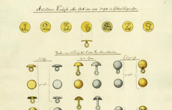 "Artillerie Knöpfe alter Art VOR ano 1798 im Gebrauch gewesen"