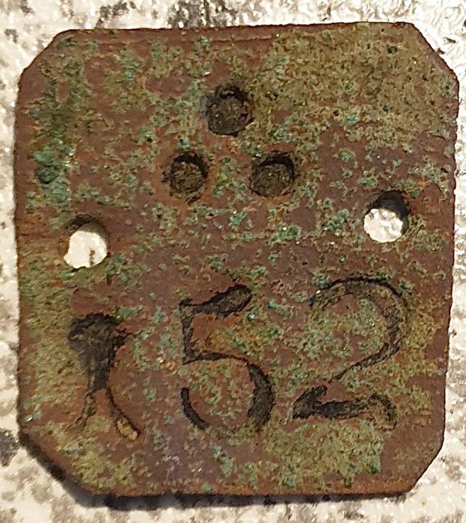 Was war das denn mal für ein Typen oder Bezeichnungsschild. 20x22mm, ein Wiesenfund in 10cm Tiefe. Auf der Rückseite ist nichts.