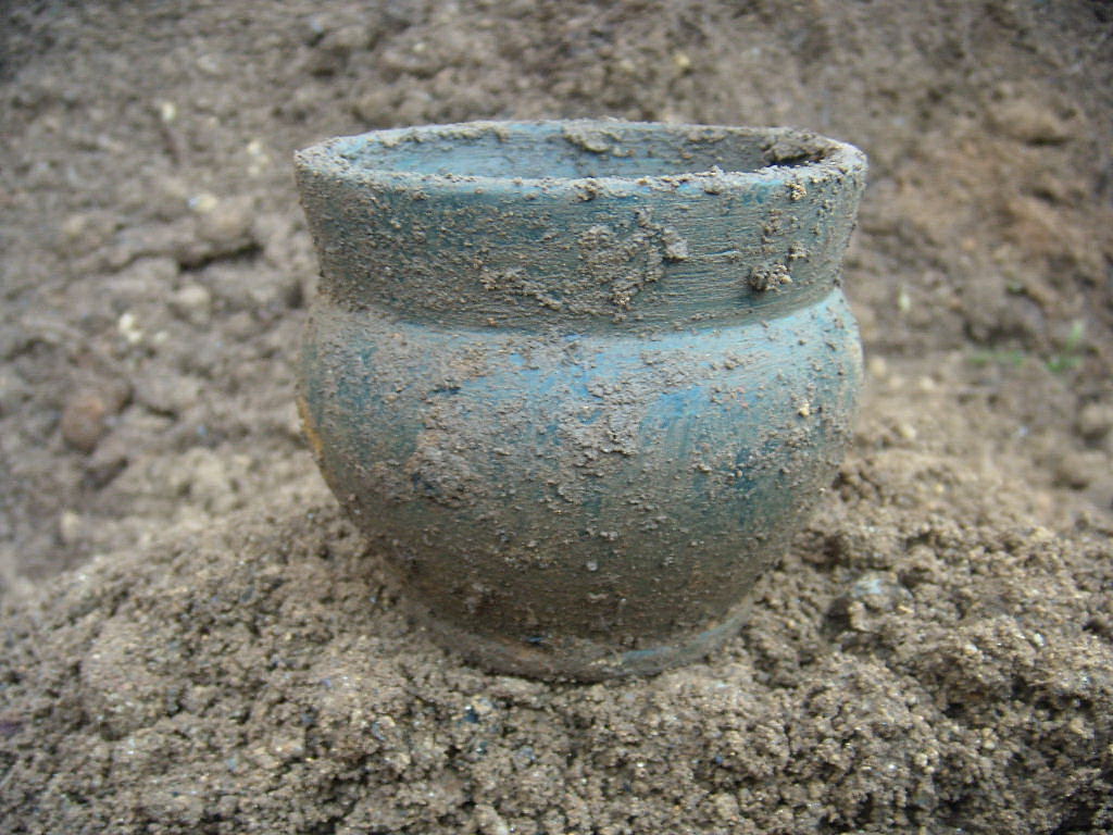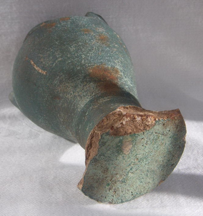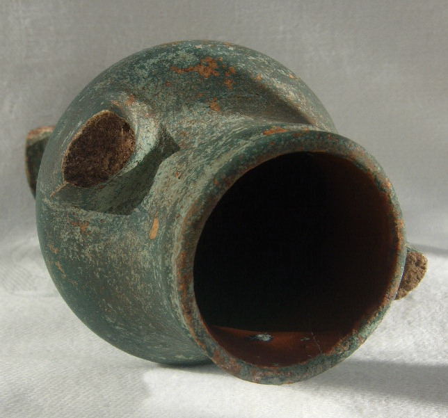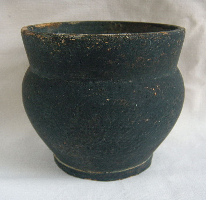 Das Teil ist innen schokoladenbraun glasiert.Sicherlich dem Empire-Stil oder Historismus zuzuordnen,aber auf alten Kippen weiß man ja nie...