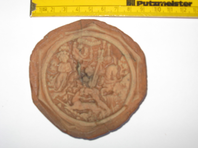 dann wohl eher Siegel....anhand der details(Ritter mit Schwert,betende Frau und Burg)