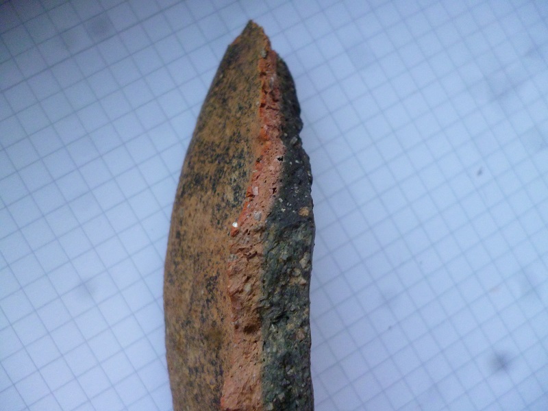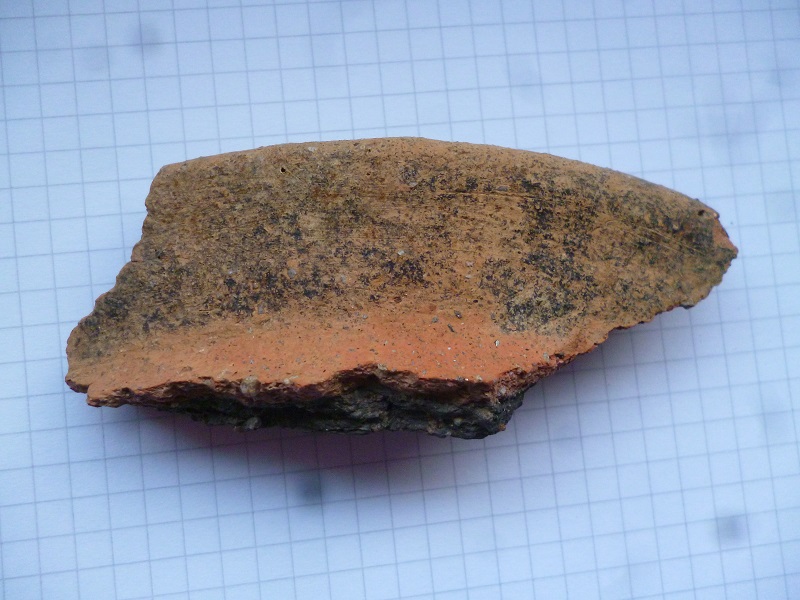 ich hab mal diese scherbe auf einem feld gefunden, sie sieht komisch aus, die eine seite schwarz, die andere braun? ist das normal und wie alt mag sie eigentlich sein?
