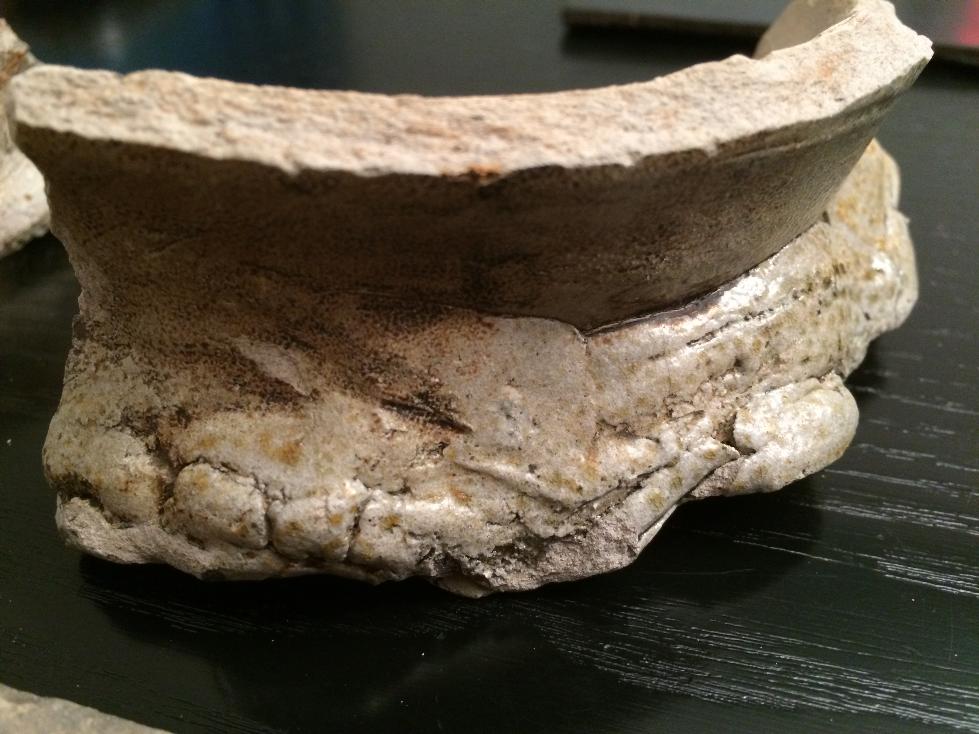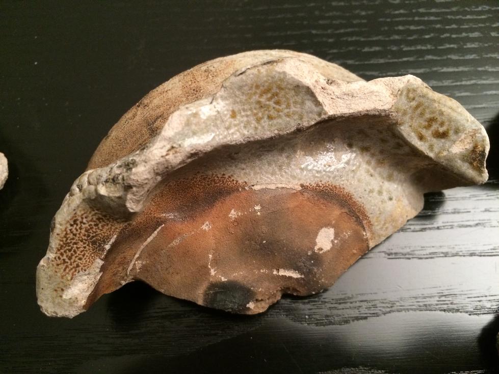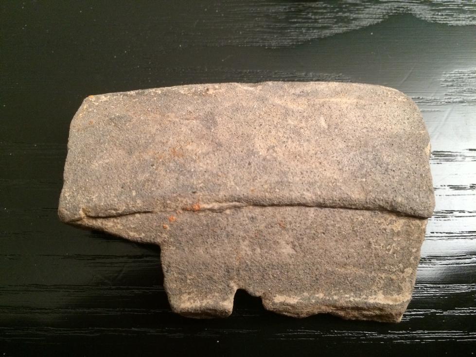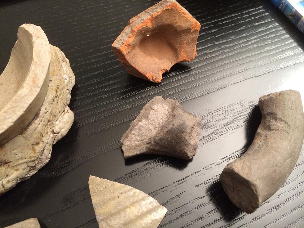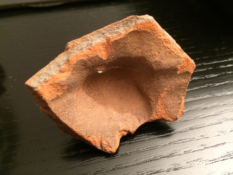 Das "orangene" Teil ist ein abgebrochenes Grappenfuß - Irdenware ca. 10.-12. Jhd