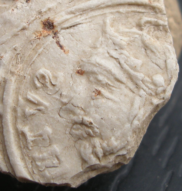 Einzelscherbe in der Umschrift links neben dem Abbild die Buchstaben ITVS