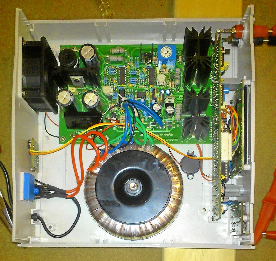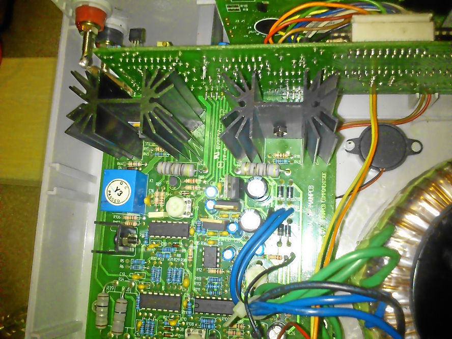 Direkt hinter den großen schwarzen Kühlkörpern sind die durchgebrannten Widerstände (grau).